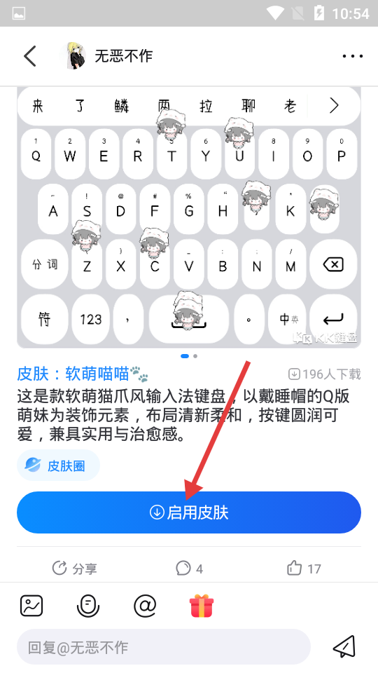 4、具备键盘个性换肤功能,结合简约的界面设计,用户能够依据个人喜好自定义外观样式;此外,还会实时更新抖音平台上的热门套路语料,让用户时刻紧跟潮流趋势。