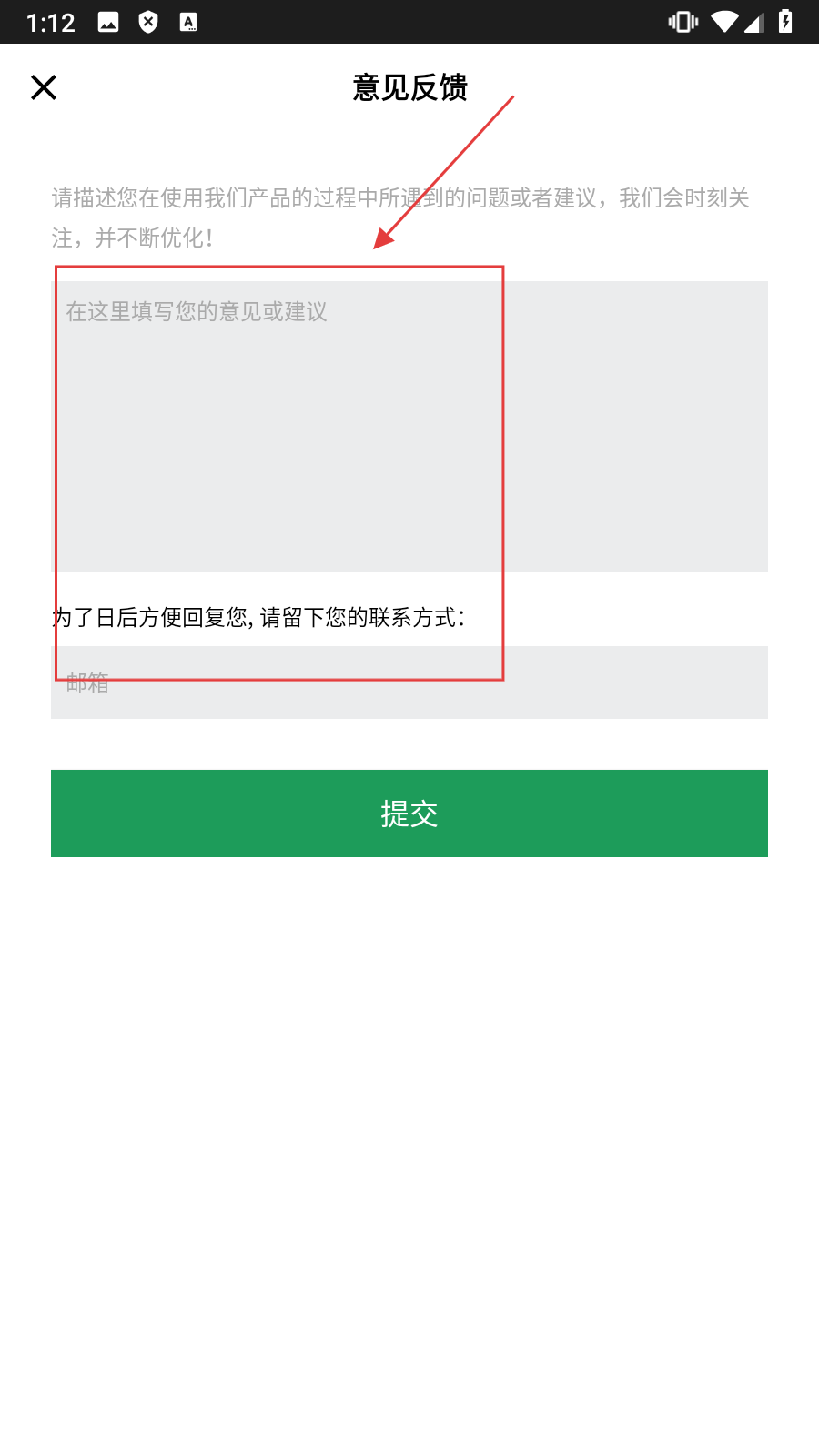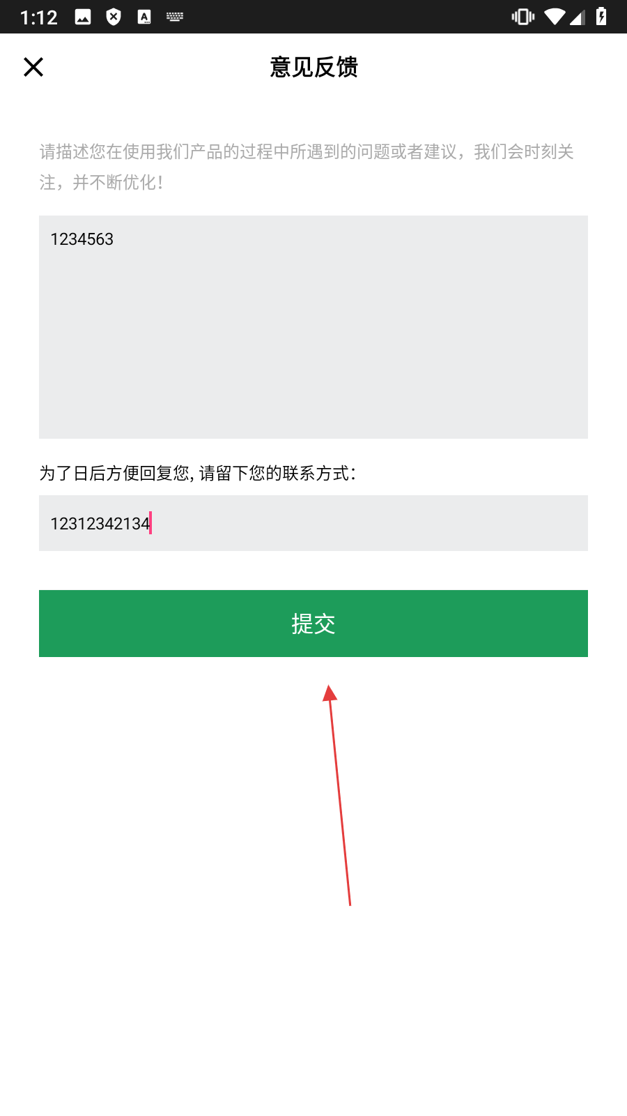 4完成所有内容的填写后,点击提交按钮,就可以结束意见反馈的流程了。