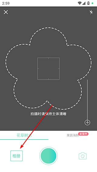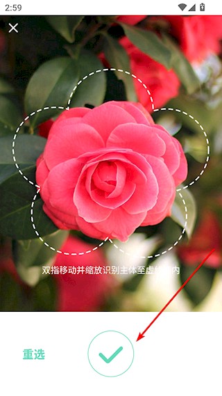 3、移动花的主题到虚线中,点击识别