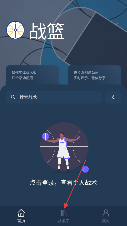 1、点击界面底部的【战术库】选项,即可进入战术库页面。
