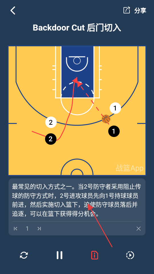 4、在战术详情页面,能够查看【Backdoor-Cut-后门切入】战术的图示与文字说明,从而知晓该战术的执行方式。