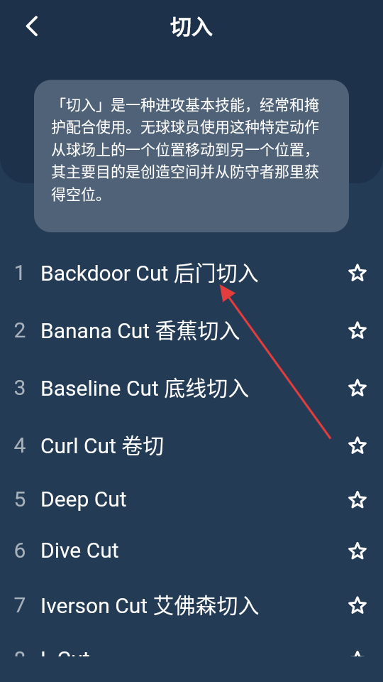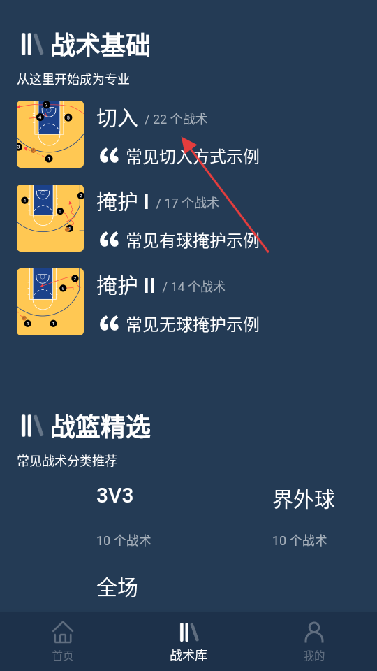2在战术库界面,选择“切入”这一战术类别,就能跳转至切入战术的具体列表页面。
