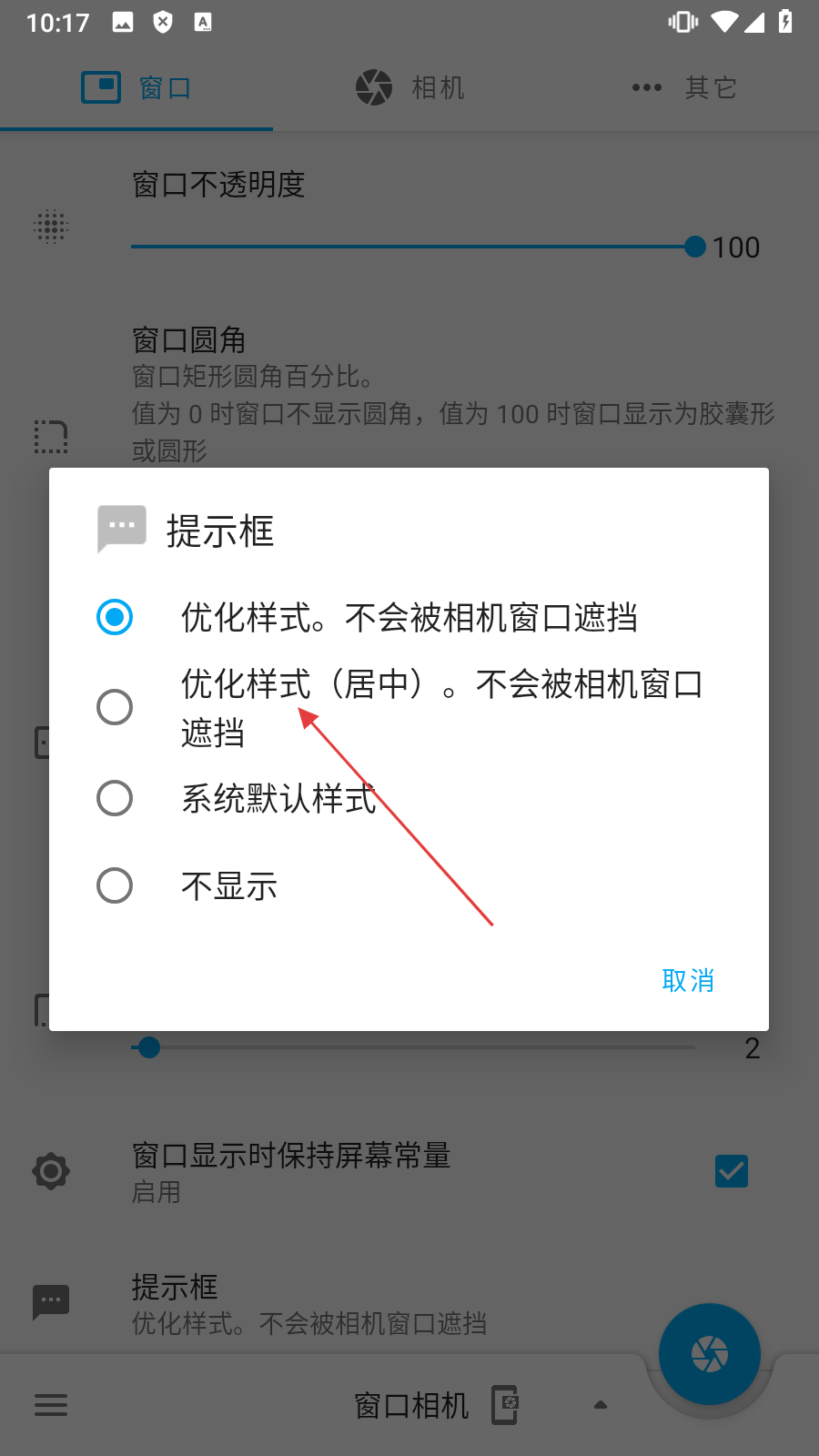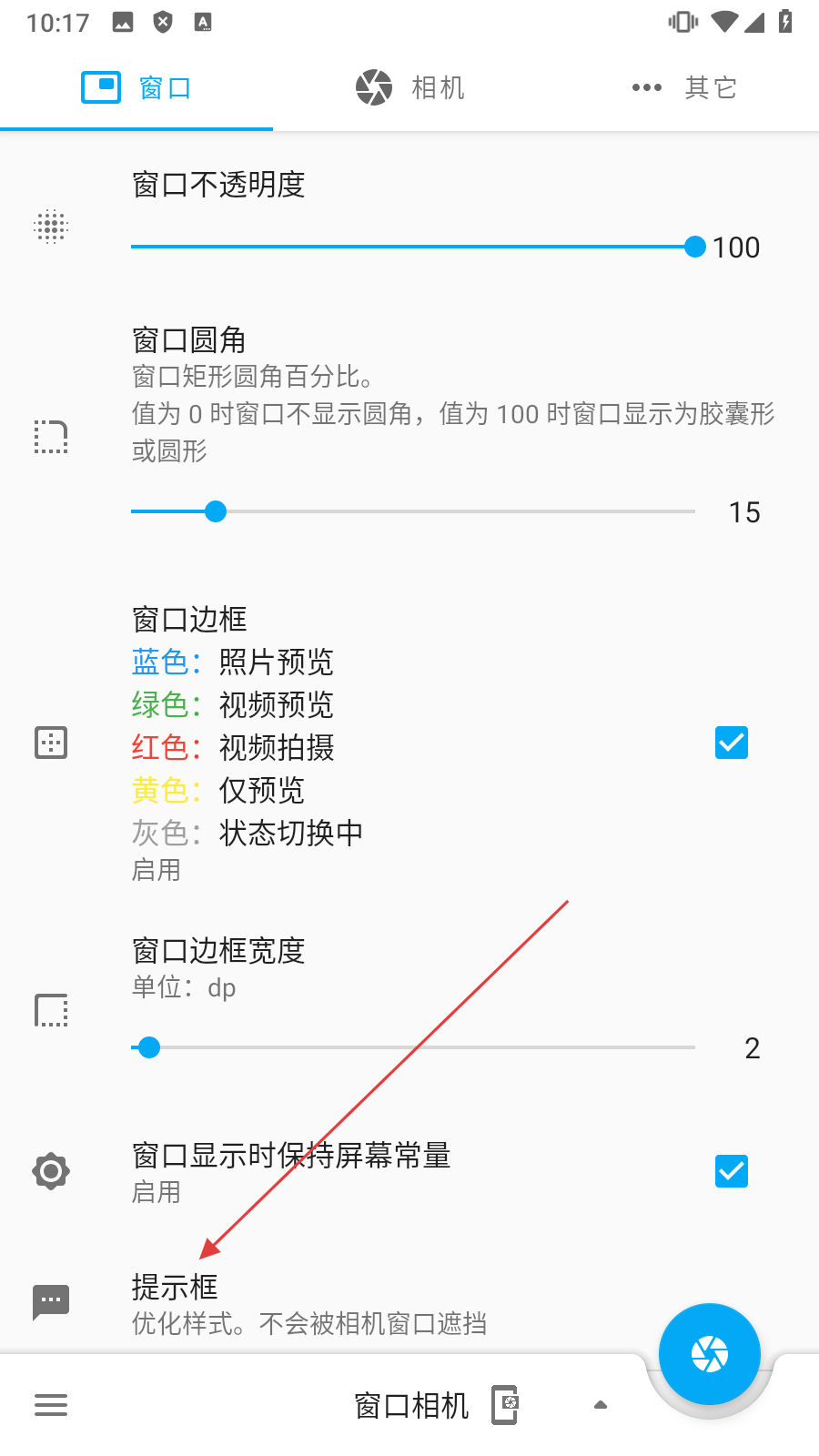 窗口相机设置