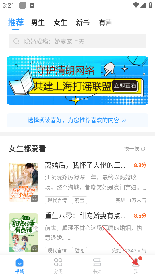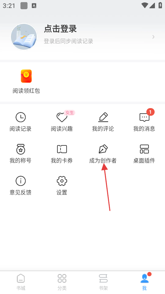 1、在书城界面,点击底部的【我】按钮,进入个人页面。