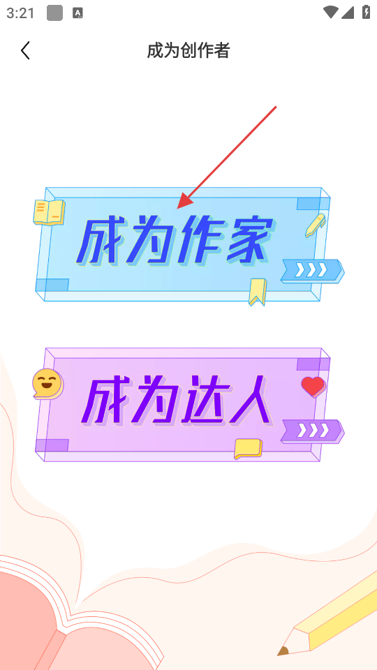 3、在成为创作者页面里,点击【成为作家】选项,进入成为作家页面。
