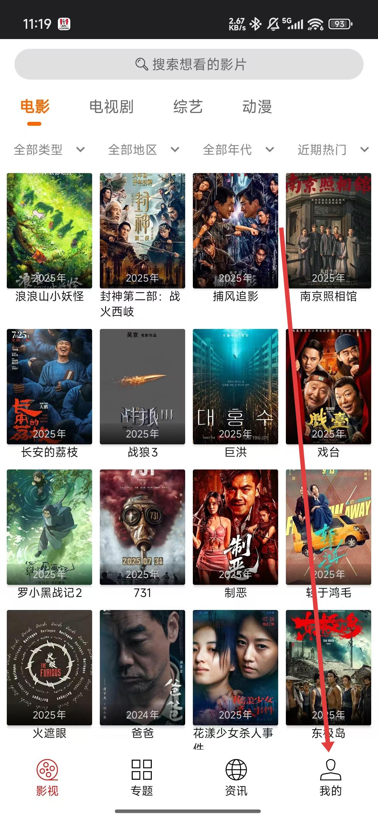 1、在进入到光影追剧首页中,可以点击下方我的按钮,进入我的主页。