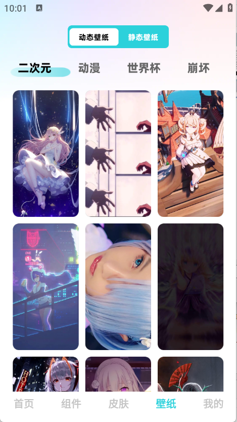 4在“壁纸”相关的页面中,汇聚了丰富多样的壁纸素材,这些素材包含了二次元风格、世界杯主题以及动漫类别的内容。