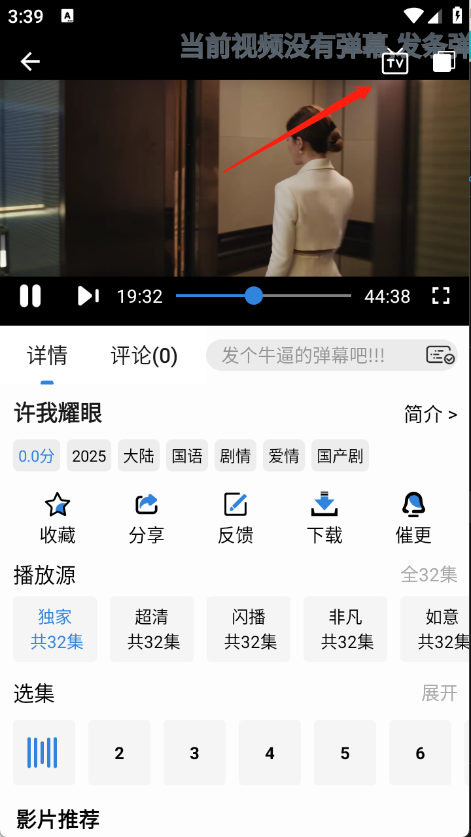 1、进入打点开想看的影片进入到播放页面,点击右上角的“TV”。