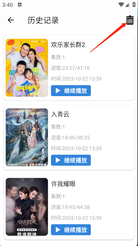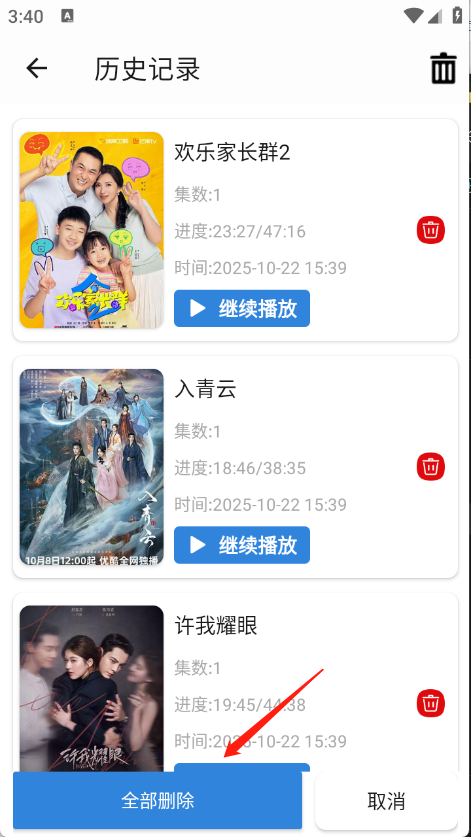 3、选择要删除的观看历史即可。