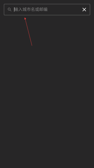 2、在城市搜索界面的搜索框中,输入【城市名或邮编】。