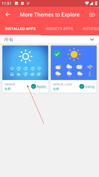 3、在主题定制界面,选择【Default】主题,进入主题应用界面。