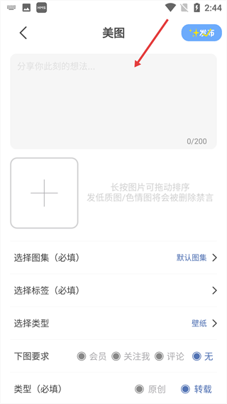 3在发布设置里,挑选好目标发布类型后,即可跳转至内容编辑界面。
