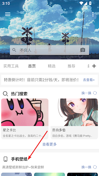 1启动搜图工具后,在主界面向上滑动页面,即可找到手机壁纸板块,接着点击目标壁纸即可。