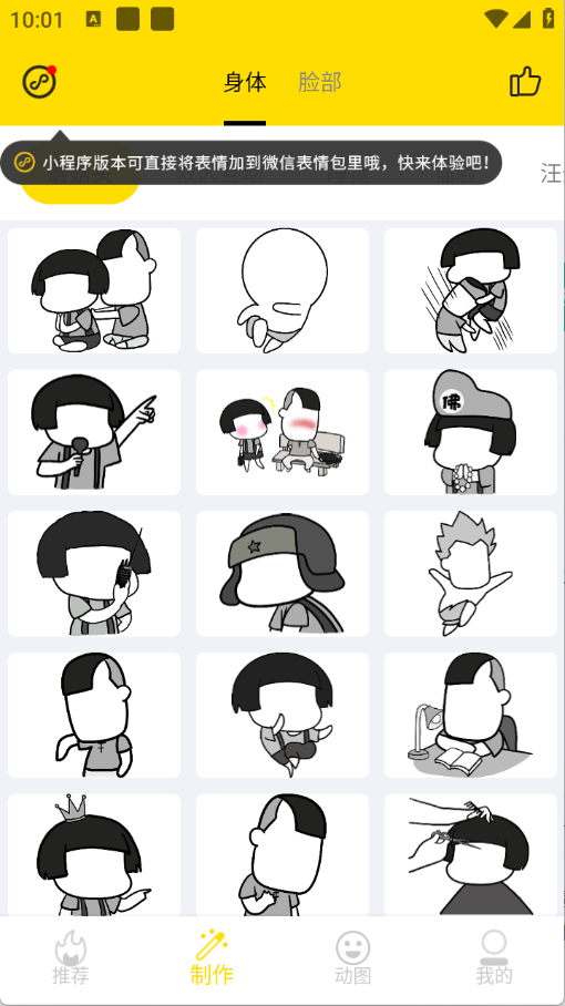 2、“制作”页面有很多的表情包素材,选择喜欢的点开。