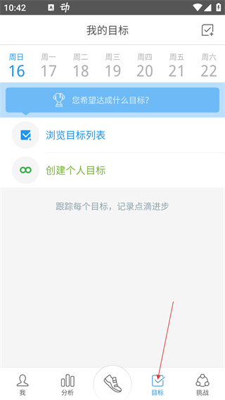 2、在目标页面点击【创建个人目标】选项,进入添加目标的分类列表页面。