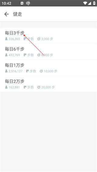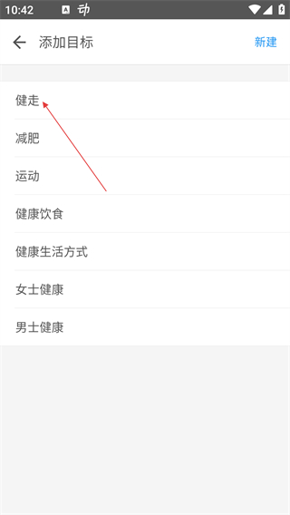 3、在分类列表里点击【健走】选项,就能进入健走类目标的具体选择页面。
