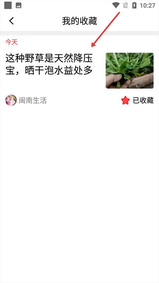 4进入【我的收藏】页面后,能看到刚添加的文章,可核实它是否处于【收藏】状态。