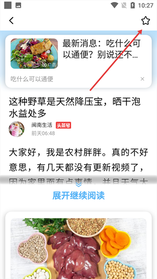 2在页面的右上方区域找到收藏相关的标识,点击这个标识就能把当前内容保存到收藏夹里了。