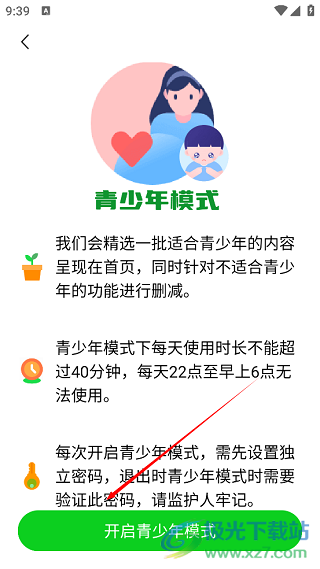 4、紧接着在弹出的窗口里,会对该模式进行详细说明,之后点击窗口下方的“开启青少年模式”按钮即可。