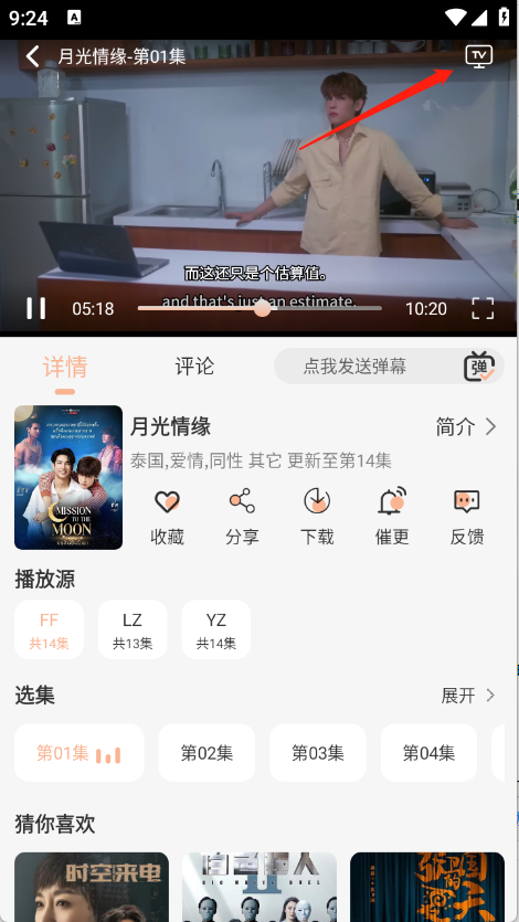 1用户打开想要观看的影视资源后,点击页面右上角的“TV”按钮。