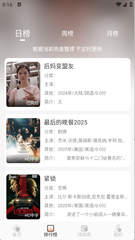 3、排行榜主要是根据当前热度将影视进行了排序。