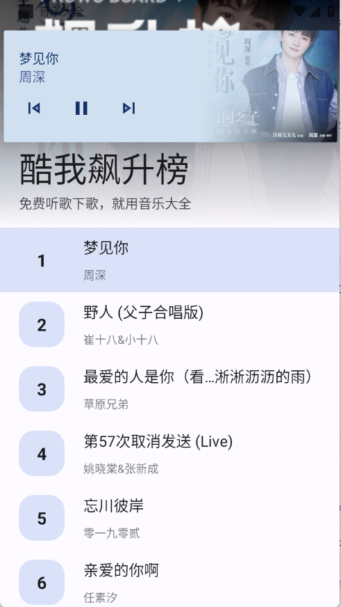 2、无需会员即可收听平台所有歌曲,每日更新最新热门音乐。