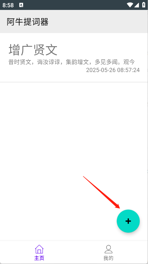 5、回到首页就可以看到提词器内容了。