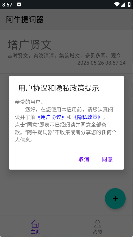 1、用户首先在3G游戏网阿牛提词器中,查看并同意隐私政策与用户协议。