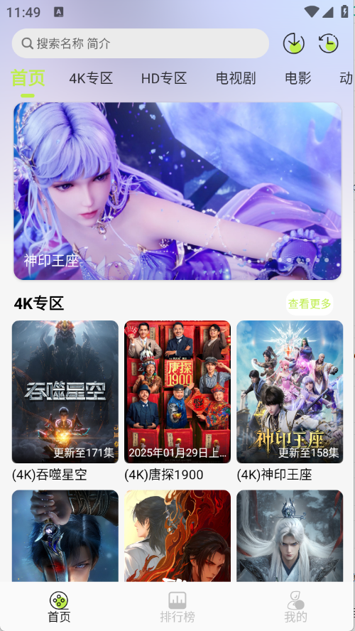 2进入首页后,能看到丰富的影视剧集分类,其中涵盖了当下热门的电视剧、电影以及动漫等内容。