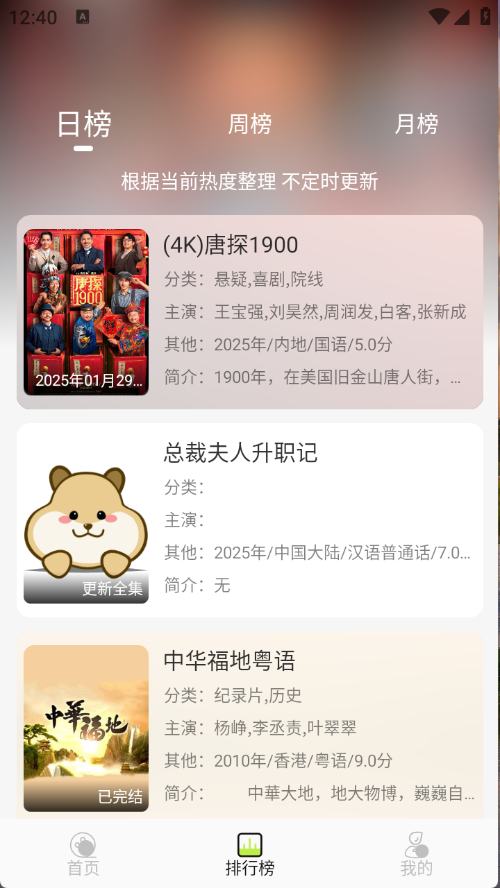 3、排行榜将影视根据热度进行排序。