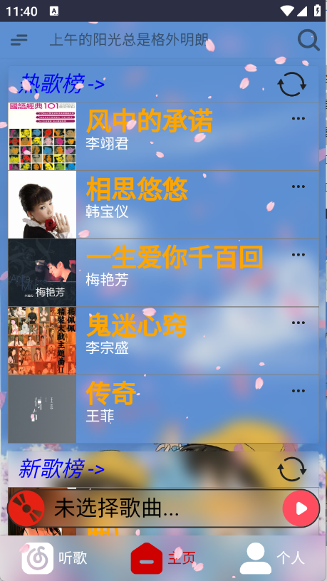 3、App采用简洁直观的界面设计,轻松浏览丰富热歌。