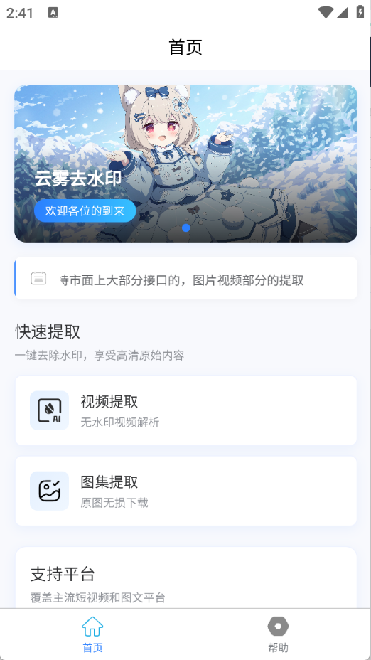 2、进入首页之后,可以选择视频提取以及图集提取。