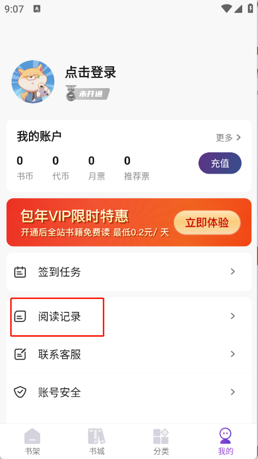 1、在“我的”页面点击“阅读记录”。