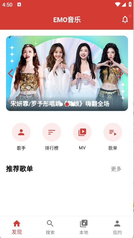 EMO音乐,专门打造的免费听歌平台,所有的音乐资源都是免费的,可以通过歌手、歌名进行关键词搜索,另外还在不断更新新的音乐资源,可以创建歌单,打造不一样的听歌需求,想听的歌曲基本上在这里都可以找到。