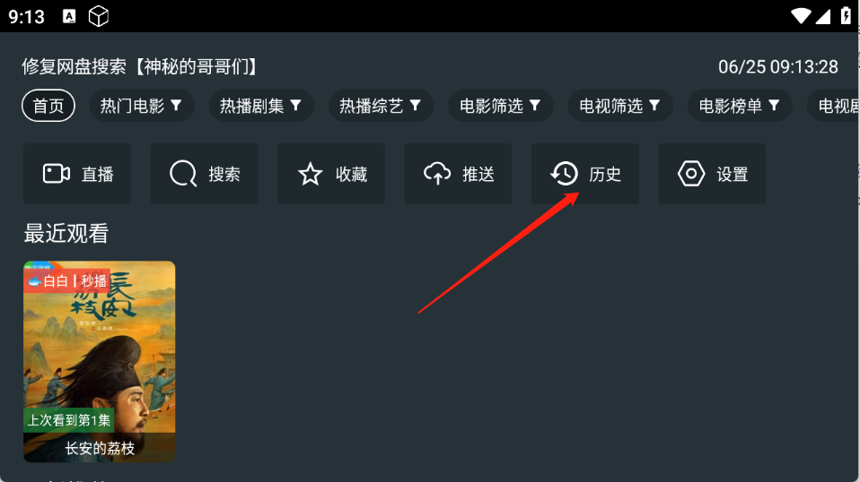 2首页顶部栏整合了丰富多样的影视剧集,包含电视剧、电影和综艺等不同类别。