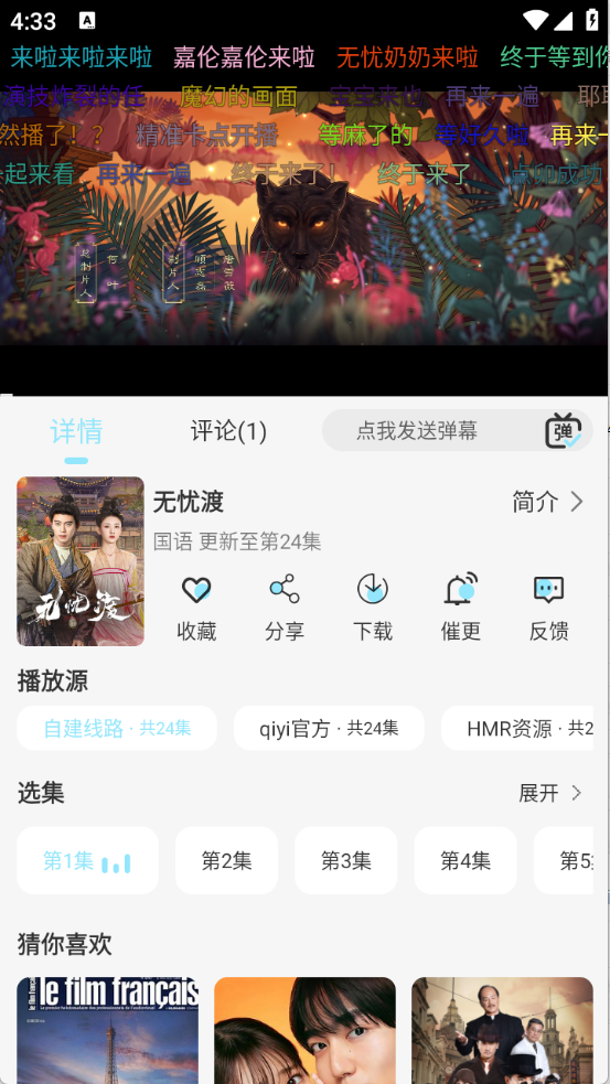 5、用户点开想看的影片之后就可以播放,另外支持换源、以及看弹幕等。