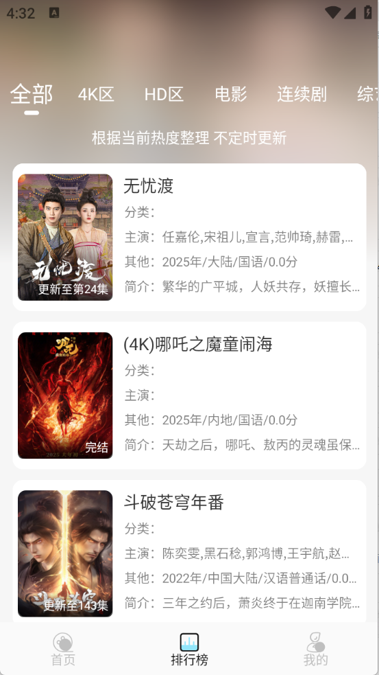 4、“排行榜”主要是根据当前热度将影视进行排序。