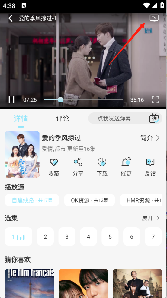 3、支持全屏播放,可投屏,多条线路切换,随时观看高清视频。