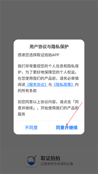 1、仔细阅读《用户协议与隐私保护》内容后,点击“同意并继续”按钮,即可进入应用主界面。