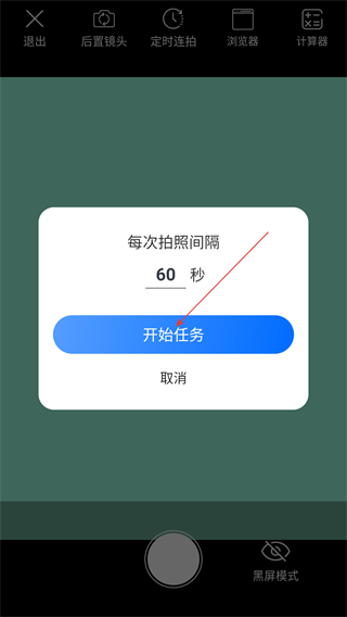 4把连拍间隔设置为60秒并确认无误后,点击“开始任务”按钮,即可启动定时连拍功能。