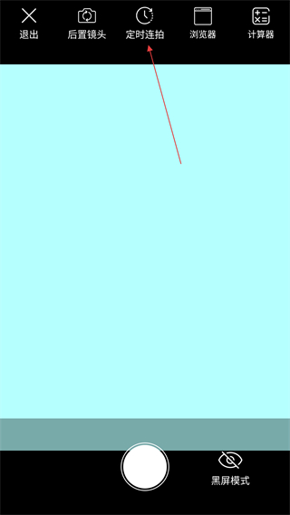 3、在拍照页面的顶部位置,点击【定时连拍】按钮,即可弹出用于设置连拍间隔的设置窗口。