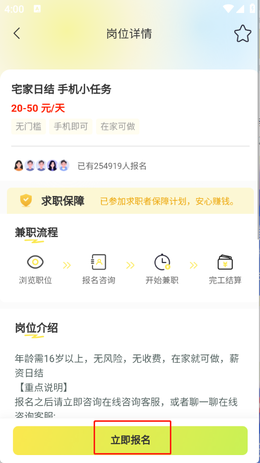 4、点击喜欢的兼职金进入点击“立即报名”即可。