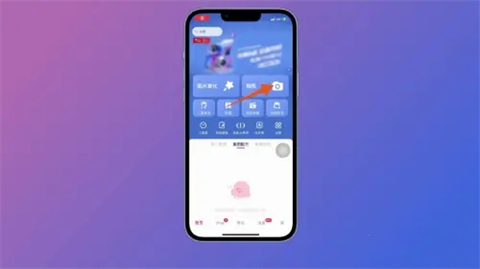5、点击相机图标,回到美图秀秀的主界面后,找到并点击“相机”选项将其开启。