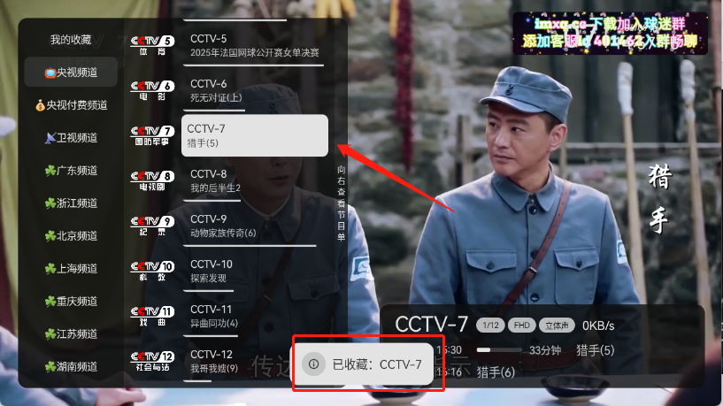 4、长按想要收藏的电视频道就可以了。
