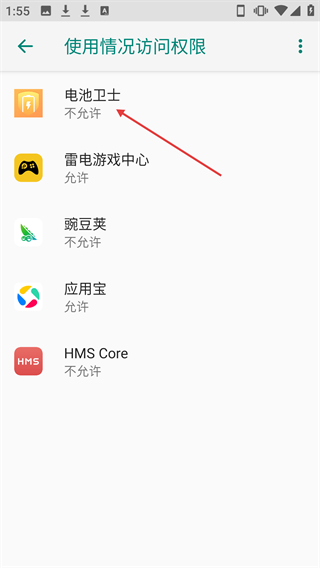 3、在使用情况访问权限列表中找到【电池卫士】应用。