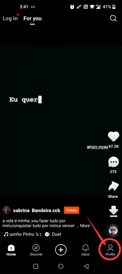 1、成功安装kwai快手国际版后,点击界面右下角的“profile”选项。