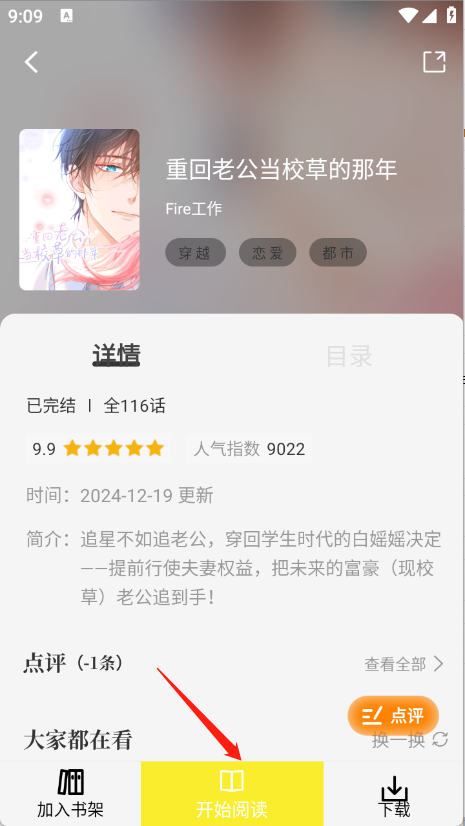 4、点开想看的漫画资源进入详情页,点击“开始阅读”。