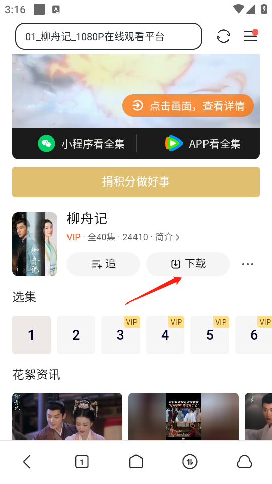3、进入到网页的播放窗口里面,可以看到“”按钮。