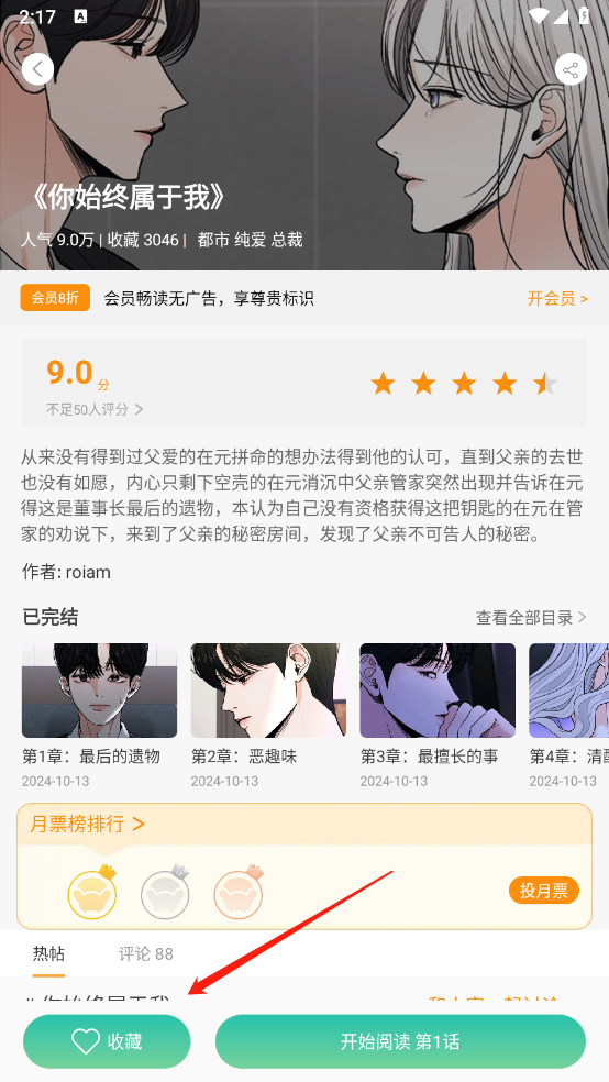 3、收藏之后,点击'书架“就可以看到收藏的漫画了。