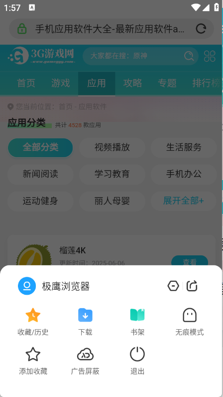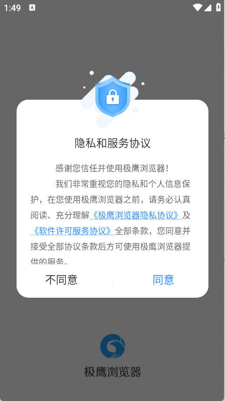 1、用户首先在3G游戏网极鹰浏览器,查看并同意隐私政策与用户协议。